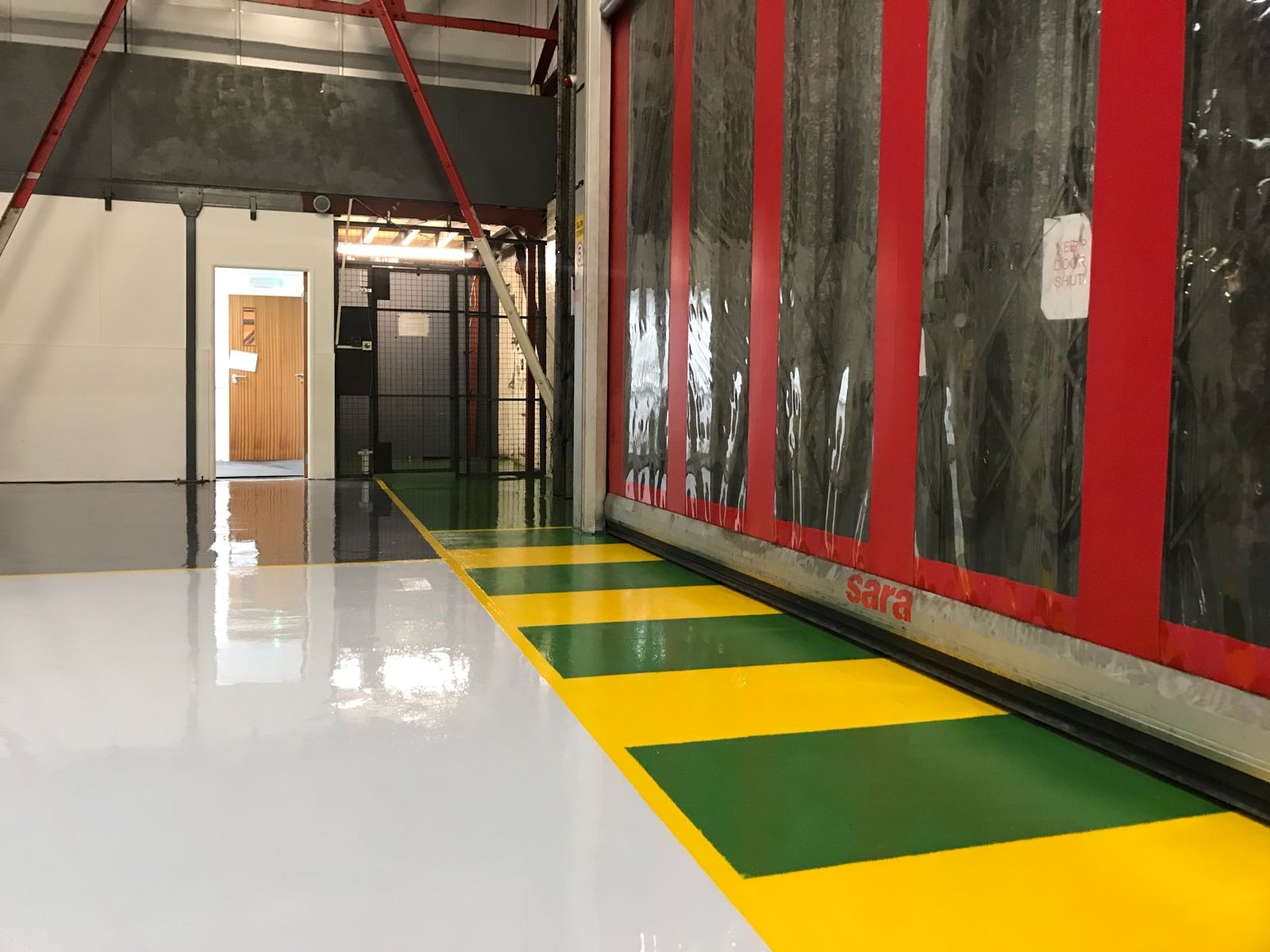 Epoxy flooring withstands heavy machinery, forklift traffic and chemical spills. It’s also got incredible features like being anti-static, and you can add extra anti-slip precautions.